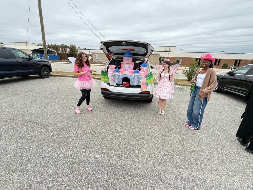 Students dressed as fairies stand beside a castle-themed trunk at Evans High School’s Trunk-or-Treat. Photo by Drew Wall.
