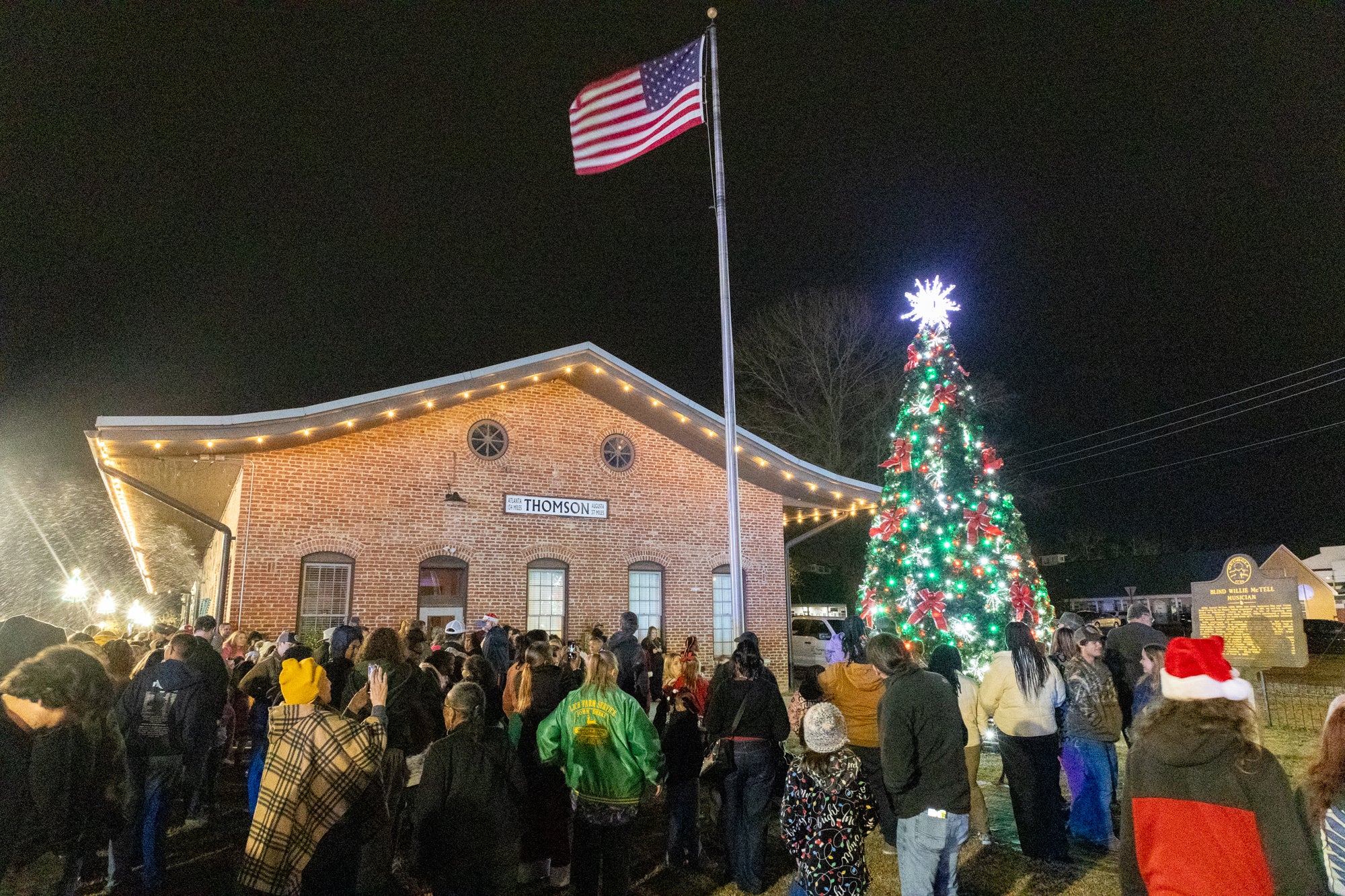 Hundreds gather in downtown Thomson, GA by the depot for the Christmas Tree Lighting. Photo by Randy Pace