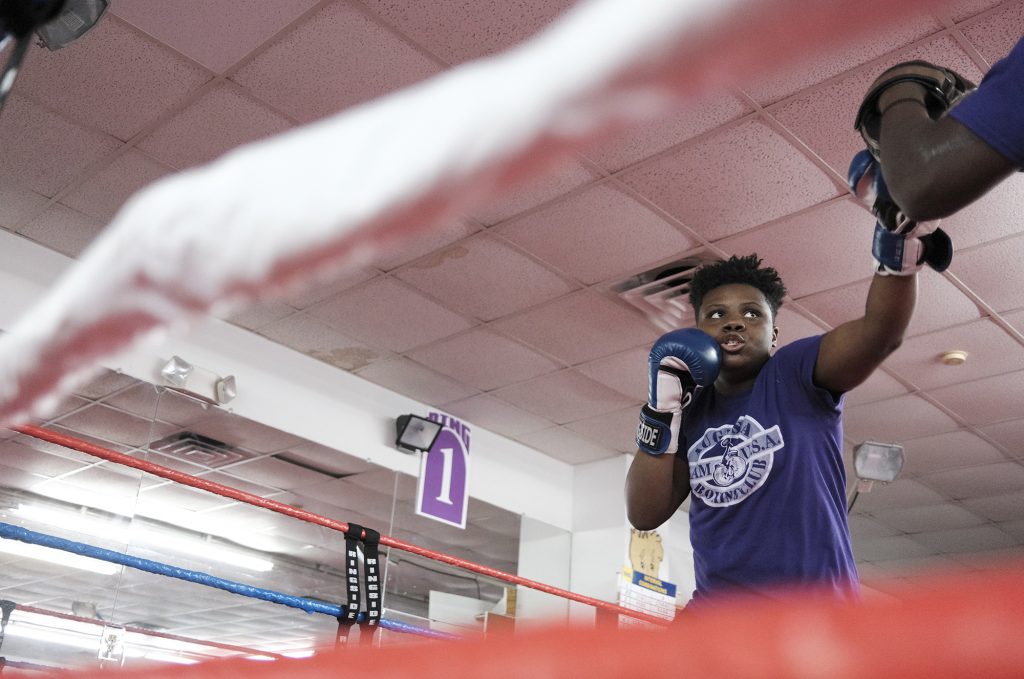 George Edwards practices on the bag at the Augusta Boxing Club's open house on Feb. 9, Photo by Mike Adams.