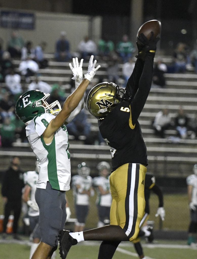 Devin Robinson of North Augusta runs past a Easley defender in the 4th quarter on Friday, Nov. 4, 2022 in North Augusta, SC. North Augusta defeated Easley 26-14 to advance to the 2nd round of the State High School football playoffs. Mike Adams photo.North Augusta head coach Matt Quinn celebrates a Yellow Jacket blocked punt for a touchdown on Friday, Nov. 4, 2022 in North Augusta, SC. North Augusta defeated Easley 26-14 to advance to the 2nd round of the State High School football playoffs. Mike Adams photo.North Augusta’s Amarri Wilcher makes a great catch against Easley on Friday, Nov. 4, 2022 in North Augusta, SC. North Augusta defeated Easley 26-14 to advance to the 2nd round of the State High School football playoffs. Mike Adams photo.North Augusta RB DJ Curry rushes up field against Easley on Friday, Nov. 4, 2022 in North Augusta, SC. North Augusta defeated Easley 26-14 to advance to the 2nd round of the State High School football playoffs. Mike Adams photo.Marquel Weston of North Augusta, right, breaks up a pass intended for Malakia Nix of Easley on Friday, Nov. 4, 2022 in North Augusta, SC. North Augusta defeated Easley 26-14 to advance to the 2nd round of the State High School football playoffs. Mike Adams photo.