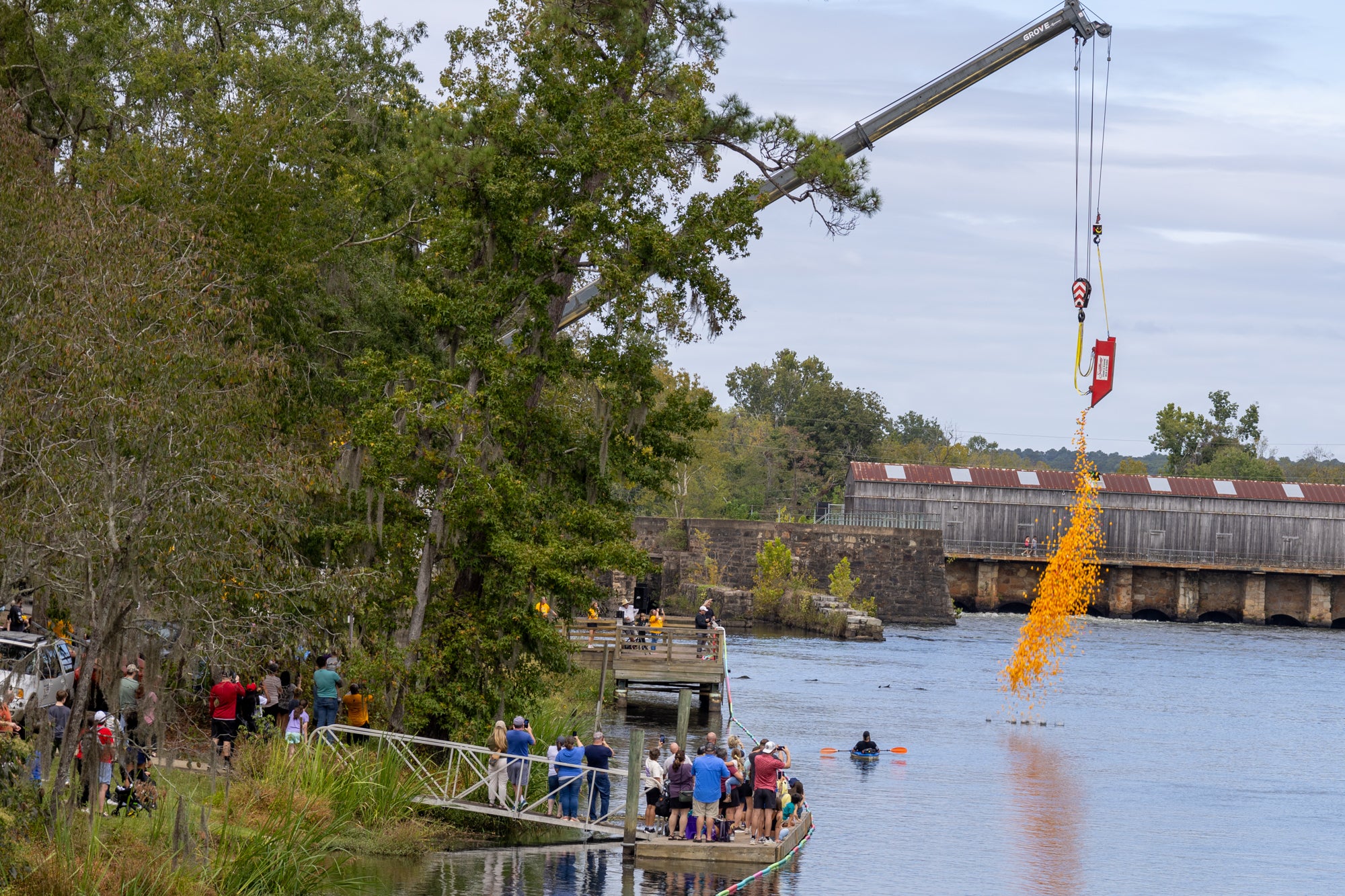 Rubber ducks being dropped into the Savannah River for the race. Photo by Randy Pace