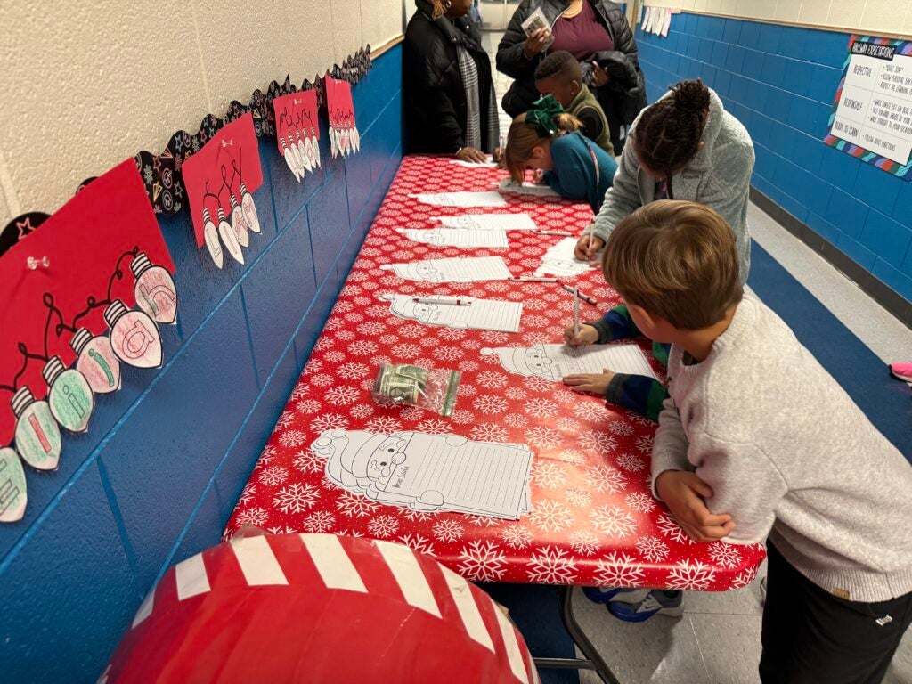 Students and parents moved from room to room, stopping for photos with Santa, crafts, bingo and a festive chorus performance in the cafeteria. Mrs. Claus hosted story time for younger children, while student vendors sold handmade items that many carried home as souvenirs.