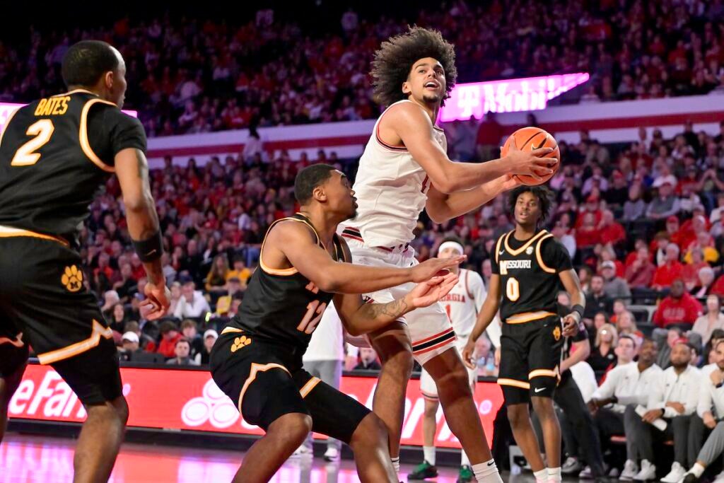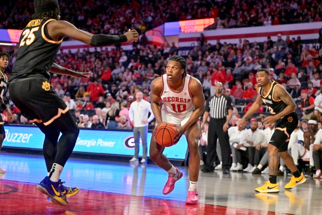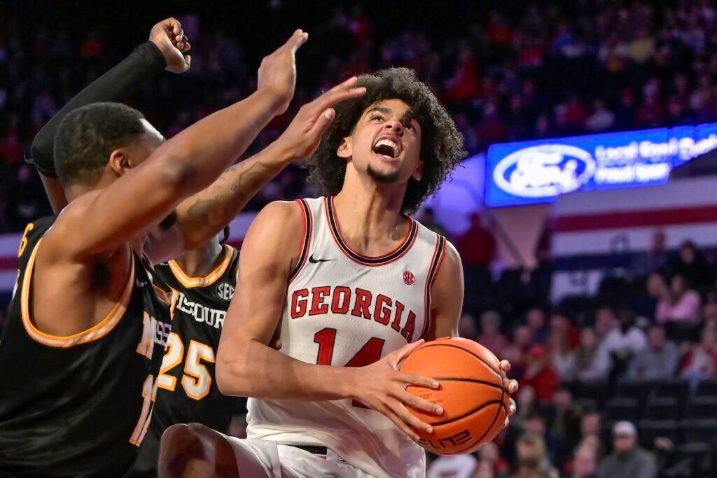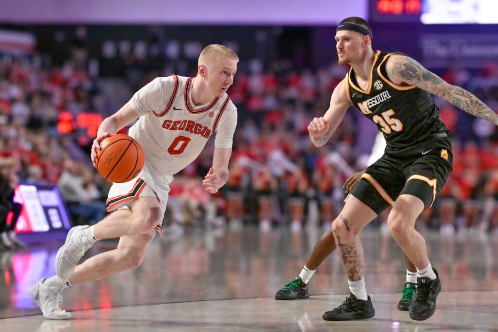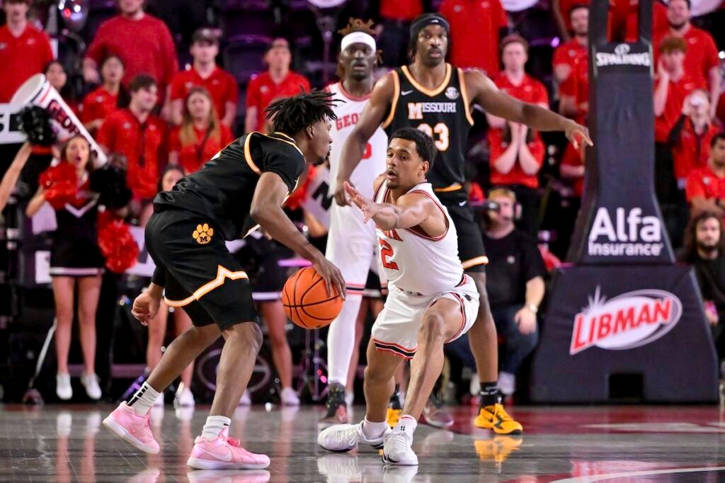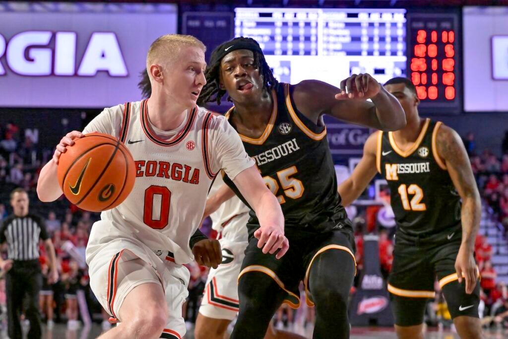 Missouri forward Anthony Robinson II (0) drives against Georgia guard Dakota Leffew (1) during a Southeastern Conference men’s basketball game against Georgia at Stegeman Coliseum in Athens, Ga., on Saturday, Feb. 15, 2025. (photo by Rob Davis)Missouri guard Tamar Bates (2) dribbles during a Southeastern Conference men’s basketball game against Georgia at Stegeman Coliseum in Athens, Ga., on Saturday, Feb. 15, 2025. (photo by Rob Davis)Georgia guard Silas Demary Jr. (5) shoots a free throw after a rare technical foul is called on Missouri before a Southeastern Conference men’s basketball game at Stegeman Coliseum in Athens, Ga., on Saturday, Feb. 15, 2025. (photo by Rob Davis)Georgia forward Asa Newell (14) dunks the ball during a Southeastern Conference men’s basketball game against Missouri at Stegeman Coliseum in Athens, Ga., on Saturday, Feb. 15, 2025. (photo by Rob Davis)Georgia fans celebrate a basket during a Southeastern Conference men’s basketball game against Missouri at Stegeman Coliseum in Athens, Ga., on Saturday, Feb. 15, 2025. (photo by Rob Davis)Georgia forward RJ Godfrey (10) drives to the basket during a Southeastern Conference men’s basketball game against Missouri at Stegeman Coliseum in Athens, Ga., on Saturday, Feb. 15, 2025. (photo by Rob Davis)Georgia forward Asa Newell (14) grabs a rebound during a Southeastern Conference men’s basketball game against Missouri at Stegeman Coliseum in Athens, Ga., on Saturday, Feb. 15, 2025. (photo by Rob Davis)Georgia forward RJ Godfrey (10) during a Southeastern Conference men’s basketball game against Missouri at Stegeman Coliseum in Athens, Ga., on Saturday, Feb. 15, 2025. (photo by Rob Davis)Georgia guard Silas Demary Jr. (5) shoots the ball during thew second half at a Southeastern Conference men’s basketball game against Missouri at Stegeman Coliseum in Athens, Ga., on Saturday, Feb. 15, 2025. (photo by Rob Davis)Georgia forward Asa Newell (14) celebrates after dunking the ball and drawing a foul during the second half at a Southeastern Conference men’s basketball game against Missouri at Stegeman Coliseum in Athens, Ga., on Saturday, Feb. 15, 2025. (photo by Rob Davis)Georgia guard De’Shayne Montgomery (2) defends during a Southeastern Conference men’s basketball game against Missouri at Stegeman Coliseum in Athens, Ga., on Saturday, Feb. 15, 2025. (photo by Rob Davis)Georgia guard Silas Demary Jr. (5) during a Southeastern Conference men’s basketball game against Missouri at Stegeman Coliseum in Athens, Ga., on Saturday, Feb. 15, 2025. (photo by Rob Davis)Georgia guard Blue Cain (0) drives to the basket as Missouri guard/forward Jacob Crews (35) defends during a Southeastern Conference men’s basketball game at Stegeman Coliseum in Athens, Ga., on Saturday, Feb. 15, 2025. (photo by Rob Davis)Georgia guard Silas Demary Jr. (5) battles to maintain possession during a Southeastern Conference men’s basketball game against Missouri at Stegeman Coliseum in Athens, Ga., on Saturday, Feb. 15, 2025. (photo by Rob Davis)Georgia guard Blue Cain (0) drives to the basket during a Southeastern Conference men’s basketball game against Missouri at Stegeman Coliseum in Athens, Ga., on Saturday, Feb. 15, 2025. (photo by Rob Davis)Georgia forward Asa Newell (14) drives to the basket during a Southeastern Conference men’s basketball game against Missouri at Stegeman Coliseum in Athens, Ga., on Saturday, Feb. 15, 2025. (photo by Rob Davis)Georgia forward Asa Newell (14) drives to the basket during a Southeastern Conference men’s basketball game against Missouri at Stegeman Coliseum in Athens, Ga., on Saturday, Feb. 15, 2025. (photo by Rob Davis)Georgia guard De’Shayne Montgomery (2) drives in the lane during a Southeastern Conference men’s basketball game against Missouri at Stegeman Coliseum in Athens, Ga., on Saturday, Feb. 15, 2025. (photo by Rob Davis)