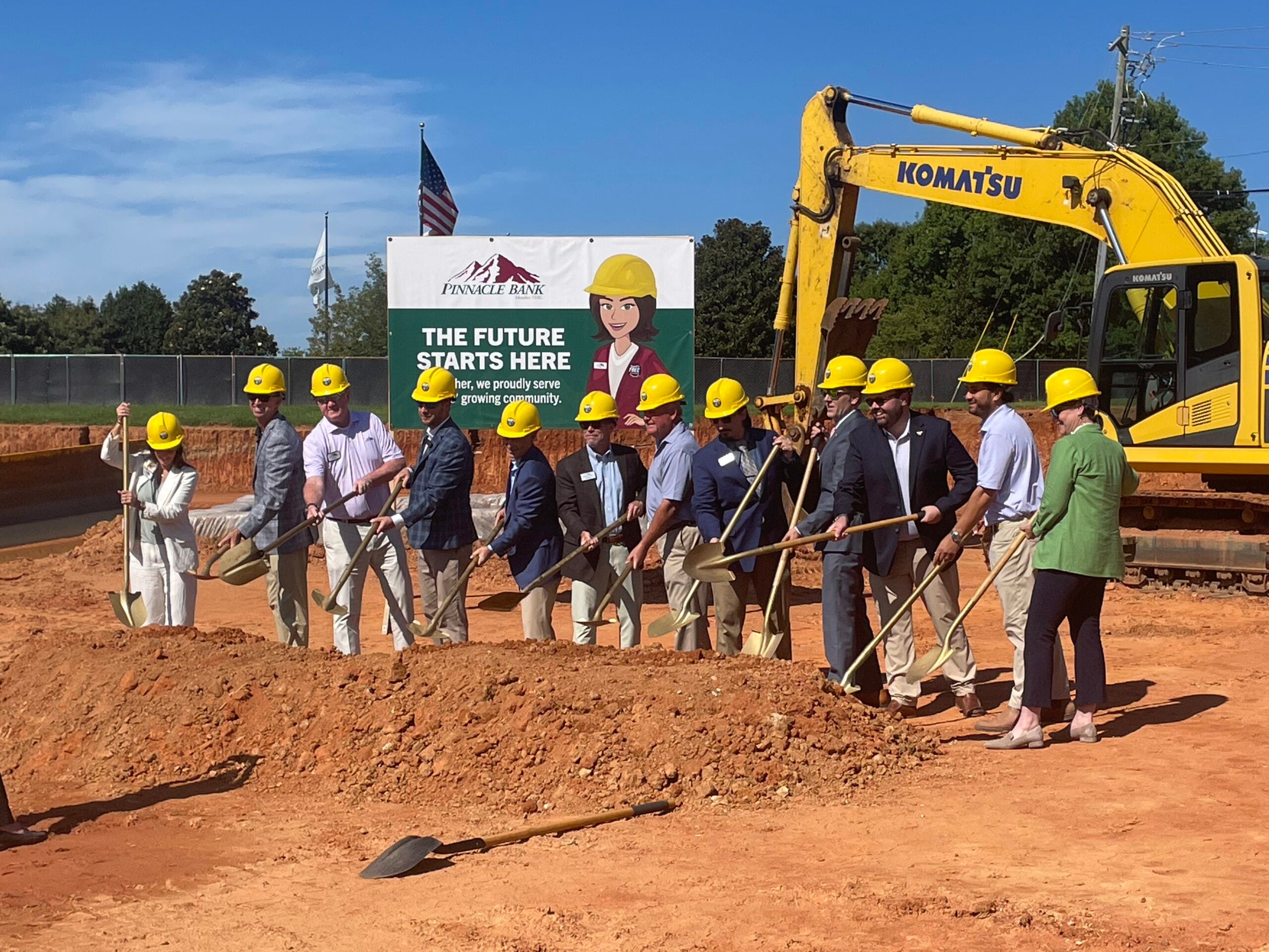 Pinnacle Bank broke ground Wednesday on what will be its flagship branch at Evans Towne Center, continuing a burgeoning presence in the CSRA.