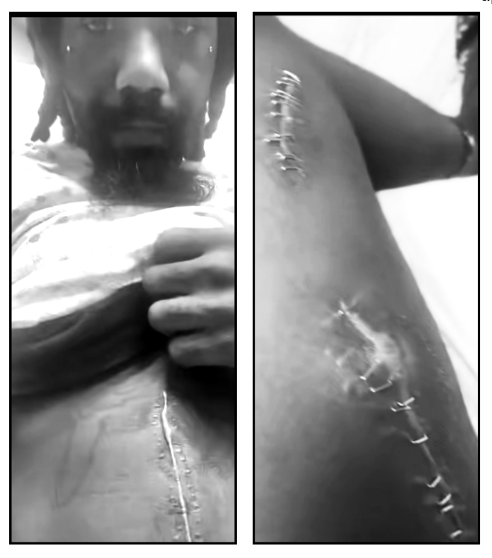Darius Mayo took pictures of his injuries after being shot by Walker 11 times in 2023.