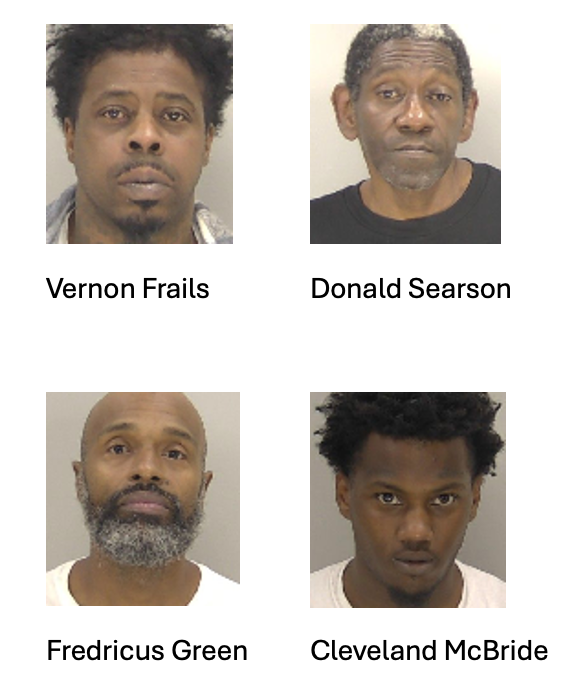 The Narcotics Division initially launched the investigation in November after identifying a network led by Robert Seymore and involving Qwintera Martin, Vernon Frails, Fredricus Green, Cleveland McBride, and Donald Searson. Investigators say the organization was responsible for distributing large amounts of methamphetamine, cocaine, marijuana, oxycodone, and other narcotics throughout Richmond County.