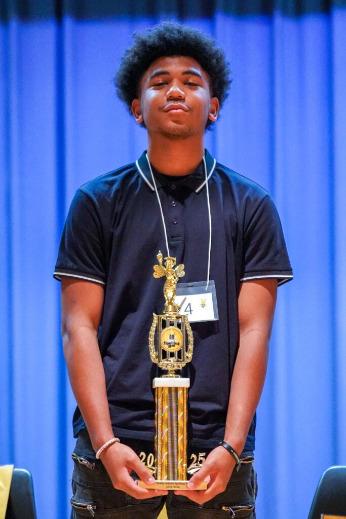 In the middle school division, Domani Hill, an eighth-grade student at Freedom Park K-8 School, claimed first place with the winning word “omniscient.”
