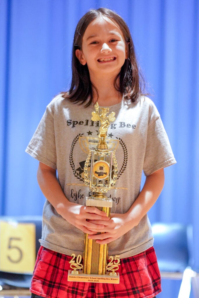 In the elementary division, Rory O’Donnell, a fourth-grade student at Blythe Elementary School, earned first place by correctly spelling the word “emporium.”