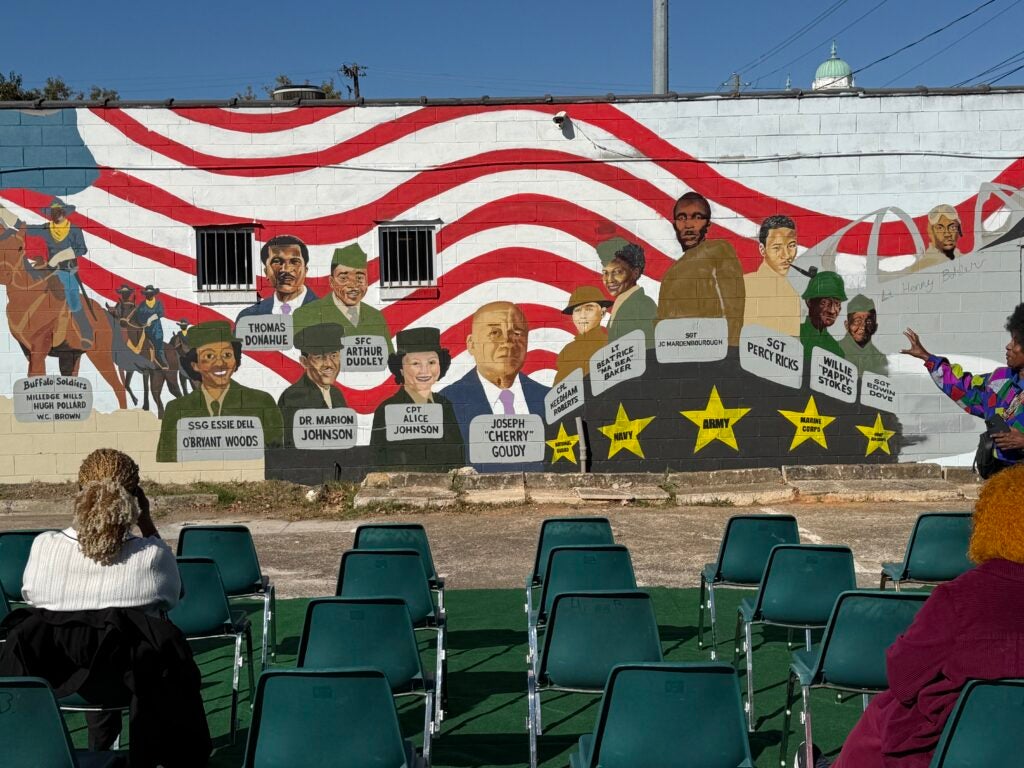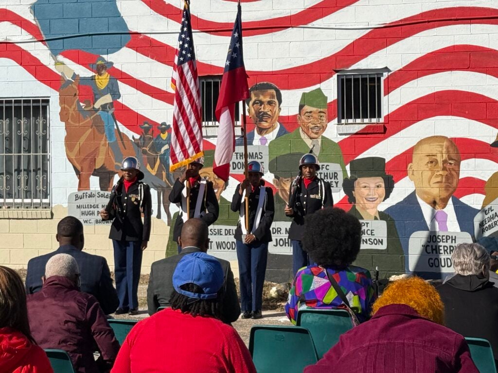 The artwork, titled “Heroes at Home and Abroad,” was painted by Augusta artist Theron Cartwright and highlights Black veterans tied to the Spanish-American War, World War I, and World War II. The project is a collaboration between the Augusta Housing and Community Development Department, the Greater Augusta Arts Council and the Lucy Craft Laney Museum of Black History.