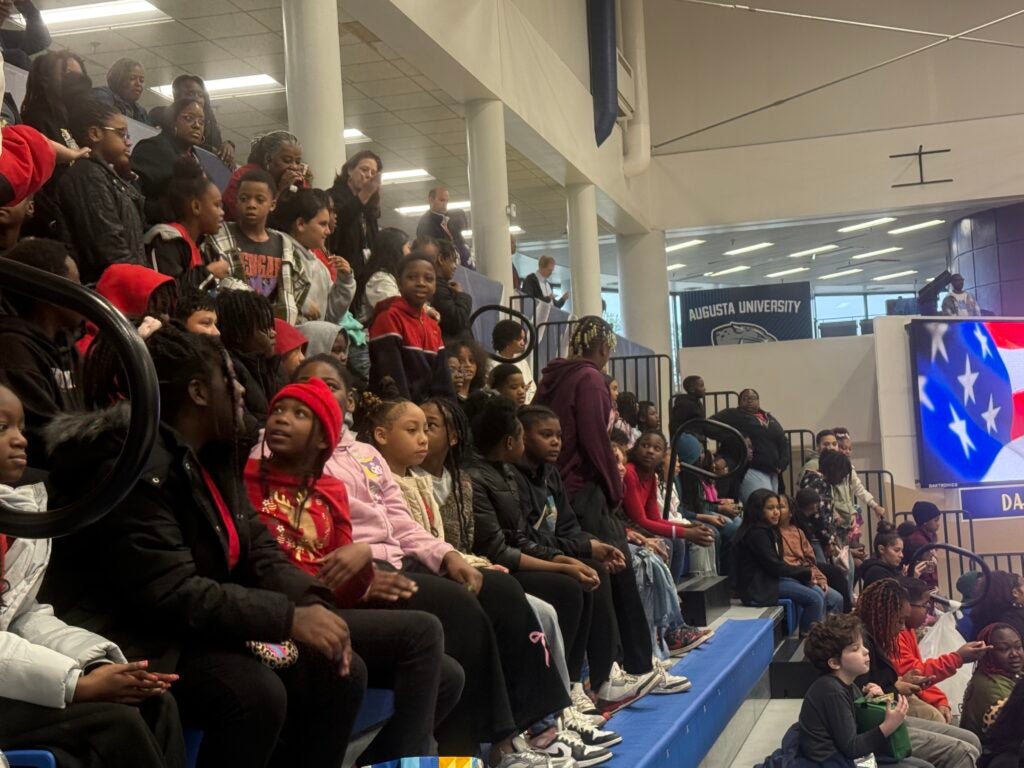 More than 2,000 Richmond County fifth graders packed Christenberry Fieldhouse on Tuesday morning for Augusta University’s annual Richmond County Education Day. The students created one of the loudest and most energetic atmospheres for the Augusta University men’s basketball team as they defeated Paine College 73-57.