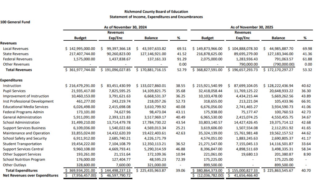Chief Financial Officer Bobby A. Smith reported the district recorded $196.1 million in revenue and $155 million in expenditures through Nov. 30, resulting in a $41.6 million positive balance.