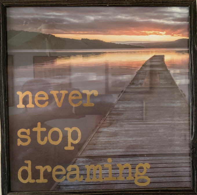Later, when I got home, I saw where she had redecorated our bedroom with art that had reminders for me like, “Never stop dreaming.”