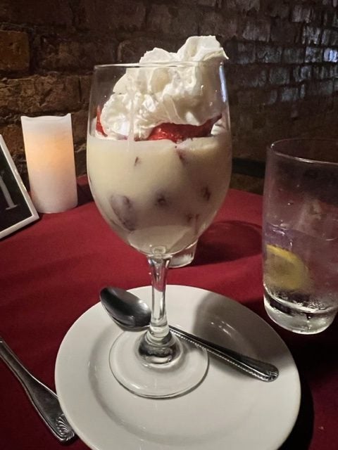 He had a quesadilla and the potato skins, while I had the salmon. For dessert, we shared some strawberries and cream. It was a light dessert with just the right amount of sweetness.