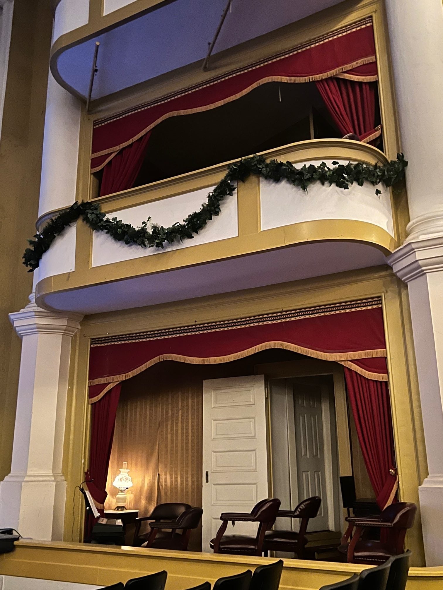 After dinner, I got my glimpse inside the three-tiered theater, where we planned to see a community theater production of “Everything I Know I Learned in Kindergarten.”