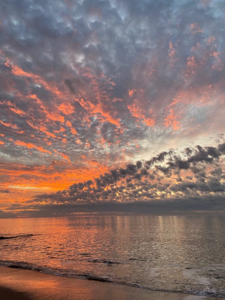 I remember one particularly glorious sunrise — not that I’ve ever seen a bad one. Ominous dark clouds hung low and heavy in the sky as a bold orange rippled from beneath them like flames licking the sky under a billow of smoke.