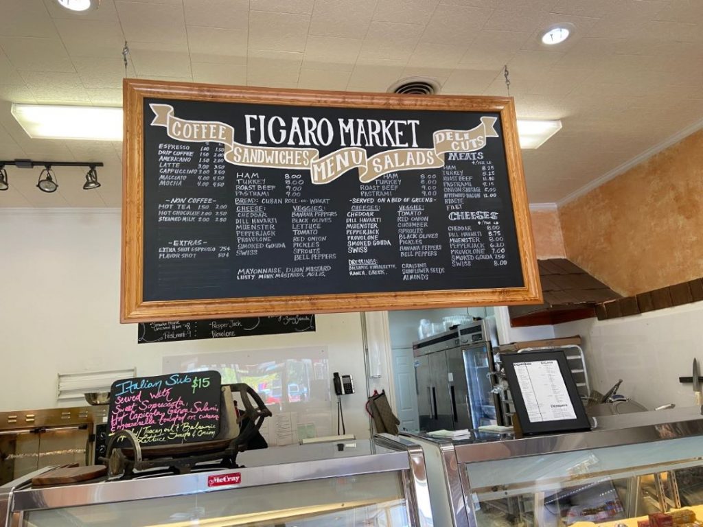 Bret opted for German fare for lunch while I ducked into Figaro’s Market, a nearby deli where I got a salad topped with deli turkey. After he finished his bratwurst and German potato salad, he came inside for dessert — a massive slice of carrot cake.