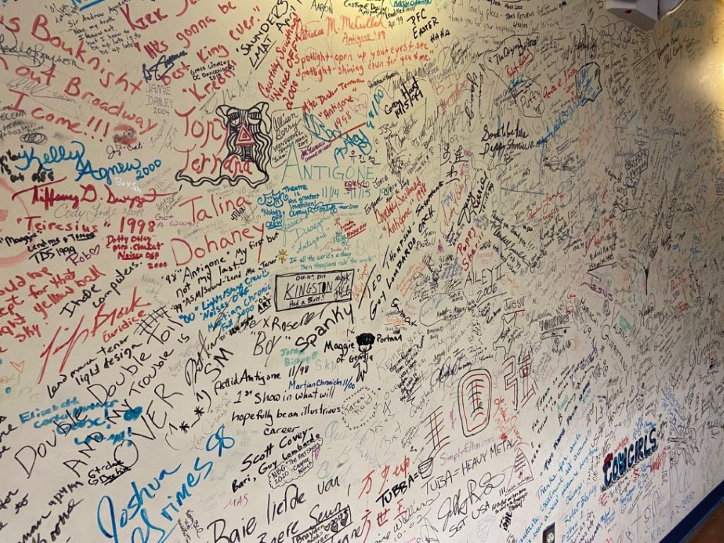 Others to sign the walls have included Kris Kristofferson, Pam Tillis, Mel Tillis and Jack Klugman. Tony Randall also signed a wall, but he never performed in the theater. He made a surprise visit to see Klugman, who was performing in “On Golden Pond.”