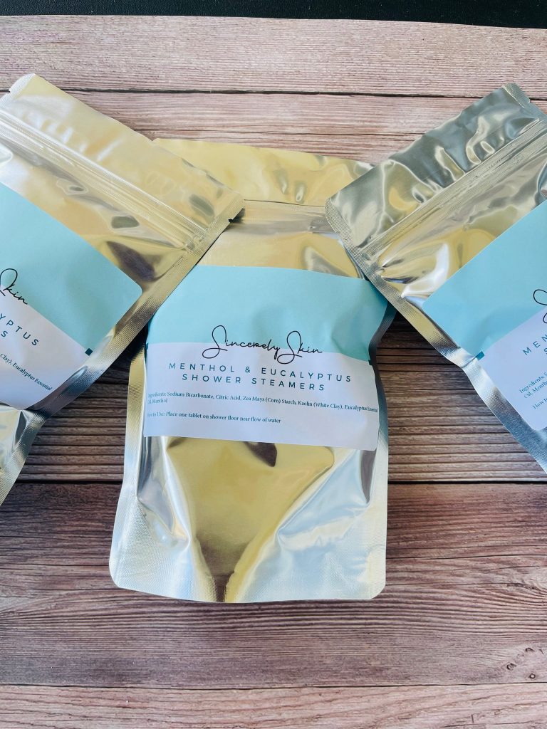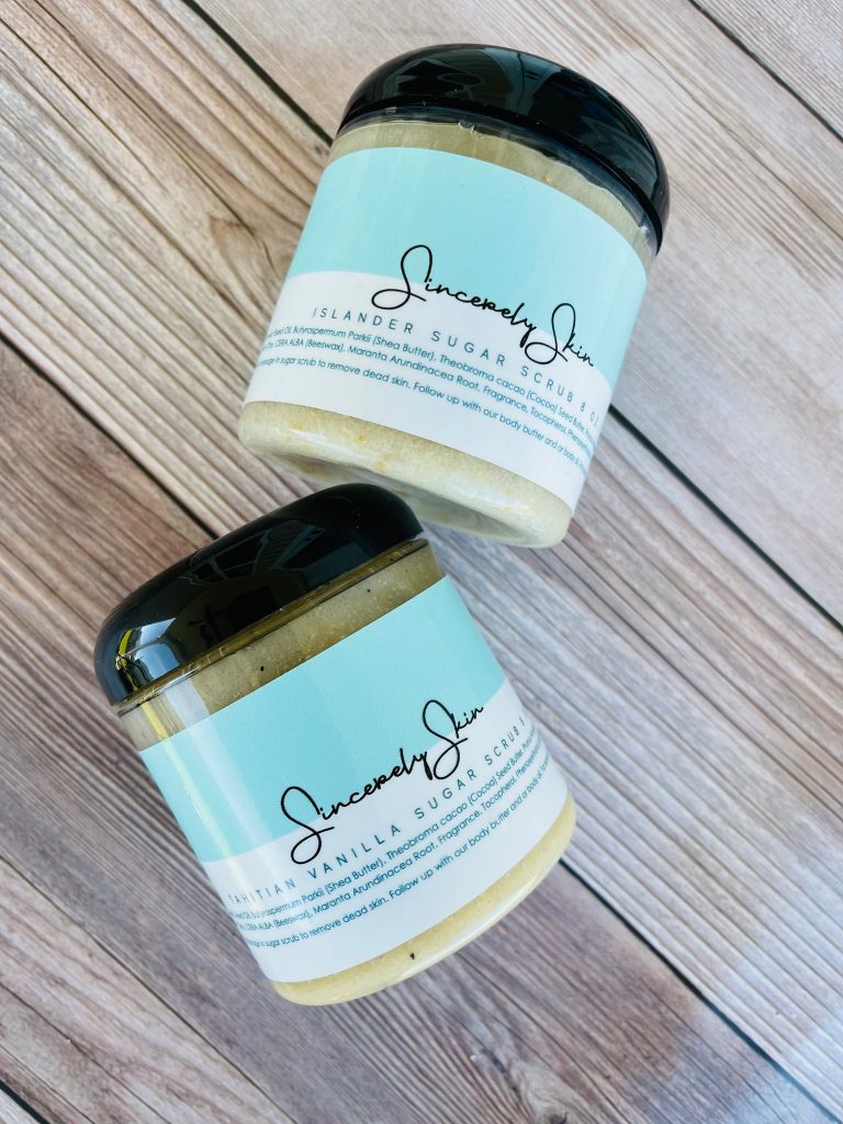 Handmade vegan soap bars from Sincerely Skin, made with shea butter and olive oil instead of fats. Photo taken from the Sincerely Skin website. Shower steamers from Sincerely Skin. Photo taken from its website. One of the skincare products offered by Sincerely Skin are the Sugar Scrubs, emulsified body scrubs made with sucrose and shea butter, among other ingredients, used to help moisturize skin. Photo taken from the Sincerely Skin website.