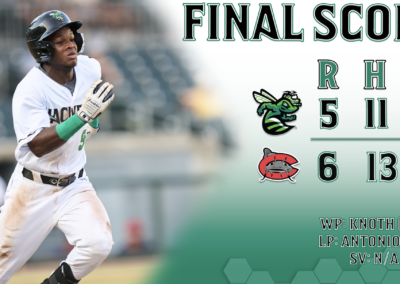The GreenJackets put a man in scoring position in four of their first six innings, but could not turn their chances into big frames, going 1-10 with RISP in a 6-2 loss to Kannapolis Wednesday evening, Sept. 3.