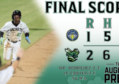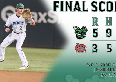 The GreenJackets scored in each of the first four innings to pull away early, while Jacob Shafer tossed six hitless frames to secure a 10-0 win in the year’s final game.