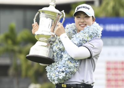 Rio Takeda shot a blistering 8-under 64 on Sunday to win the LPGA’s Blue Bay tournament by six shots ahead...