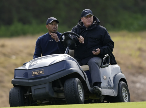 Any chance of Tiger Woods breaking par in his first official PGA Tour event in 10 months ended with one...