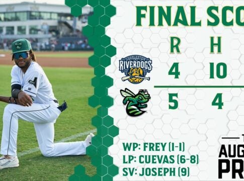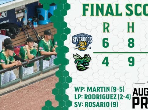 GreenJackets capitalize on four RiverDogs errors in five-run fourth to win second straight.
