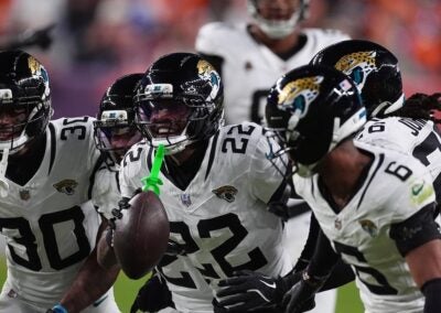 Trevor Lawrence’s teammates gave him a light-hearted present in the locker room after the quarterback broke the franchise record for total touchdowns in a season and led the Jacksonville Jaguars to the AFC South title: a diamond-covered mouth grille.