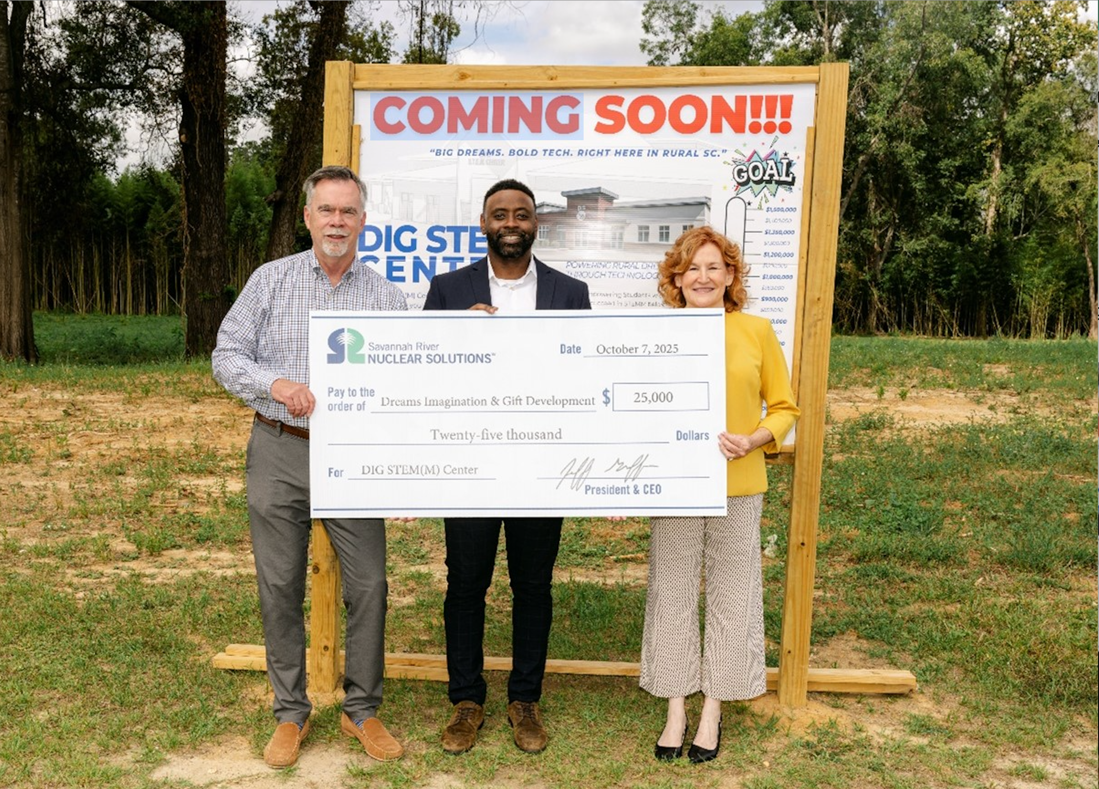 Savannah River Nuclear Solutions has donated $25,000 to support the construction of a new STEMM education facility planned by Dreams, Imagination & Gift, a nonprofit focused on expanding science and technology opportunities for rural students.