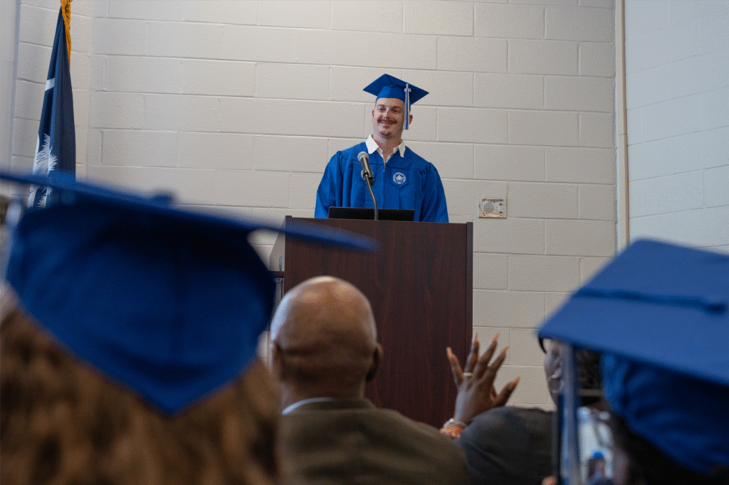 Graduate Caelan Postell reflected on the program’s impact during the ceremony.