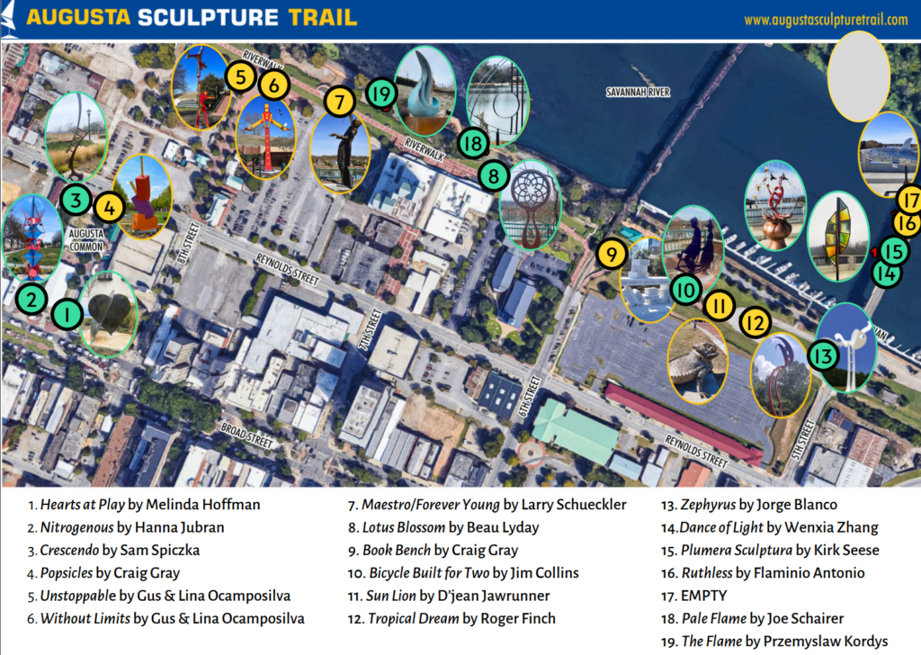 In total, there are currently 18 pieces available for viewing on the route which runs from the Augusta Common and along the Savannah River to the Fifth Street Pedestrian Bridge.