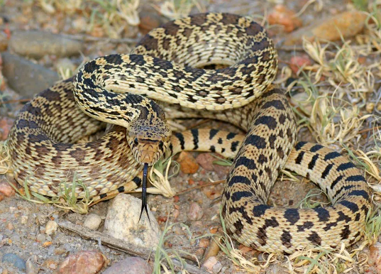 When threatened or cornered, the bullsnake will rear up and vibrate its tail to mimic a rattler.