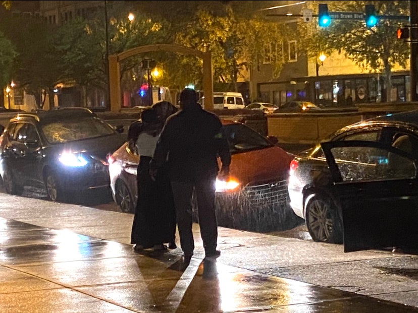 While Jenkins was driven away by a volunteer, Frazier and Wilson stayed behind and talked with other witnesses.