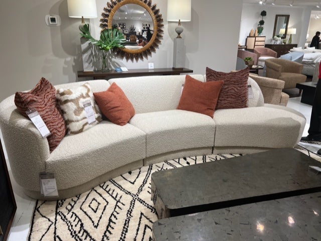 A curved sofa can really pop in a rectangular room. I find the curvature to add a high end look to a room. And what a great option as opposed to a regular “boxy” sofa.