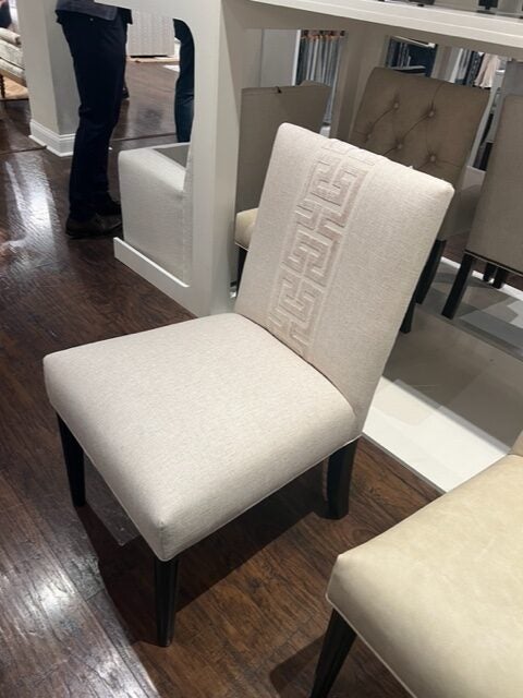 You all know I use the seven inch drapery tape a lot. When I saw it added on the back of a dining chair I was surprised and delighted! How lovely!
