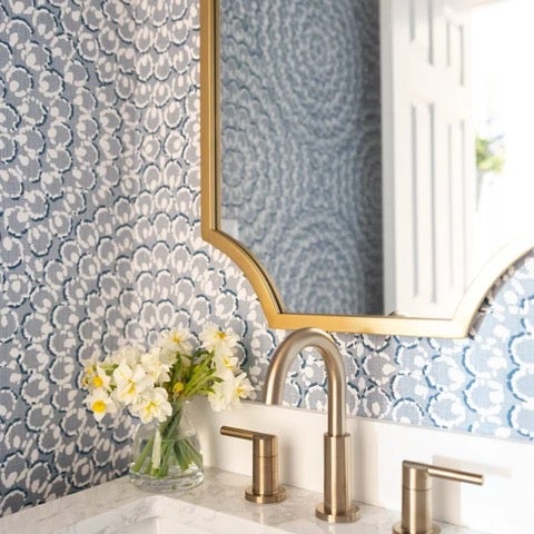 Paint is the least expensive design element. And again, you can do it yourself to help with the budget. Consider a neutral color with an accent wall in a contrasting paint color or wallpaper. Speaking of wallpaper, it has made a comeback. Wallpaper your powder room. It is the one time your guests are alone in your home and a wallpaper can make a really great statement!