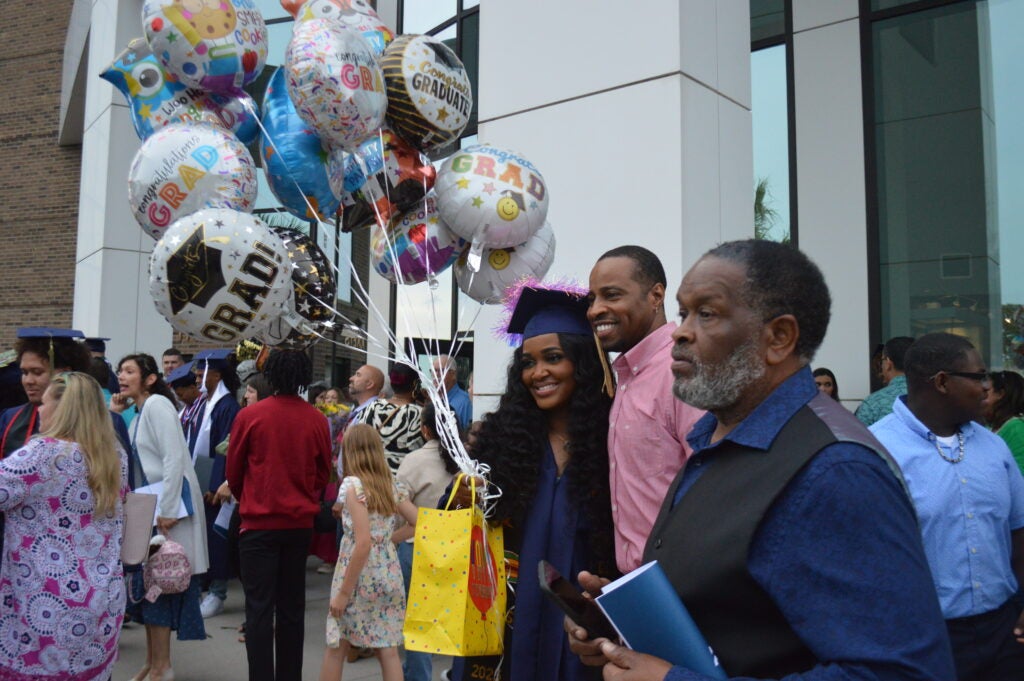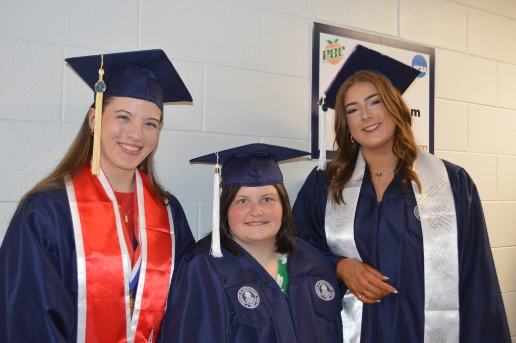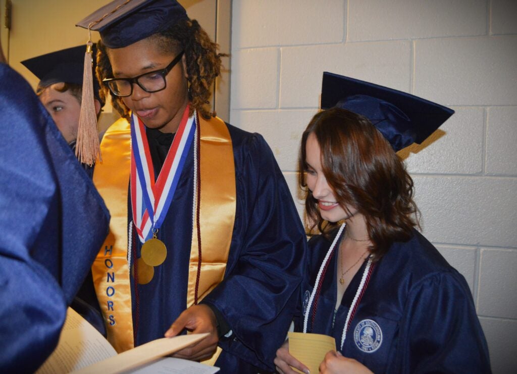 Liv Robertson, Gracie Poole and Avery Page wait for the ceremony to begin. Staff photo by Erin Weeks. A graduate is gifted with balloons. Staff photo by Erin Weeks. Two graduates wait enthusiastically for the ceremony to start. Staff photo by Erin Weeks. Avigai Guerrero after the ceremony. Staff photo by Erin Weeks.