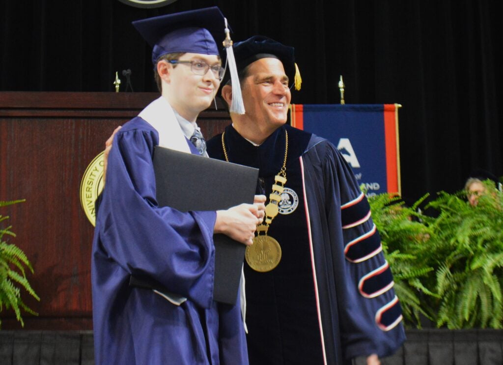 This year’s ceremony was significant in that the college’s two-year USCA LIFE program, which serves students with intellectual disabilities, recognized its first set of graduates. These included Evan Allgood, Neva Bassett, Chelsea Best, Amelia Carpenter, Lillian Colwell, Alexander Corson, Elizabeth Cottington, Ryan Johnson, Naquwarm Kelly, Jesse Reyes, David Smith, Brayden Thompson and Megan Weeks.
