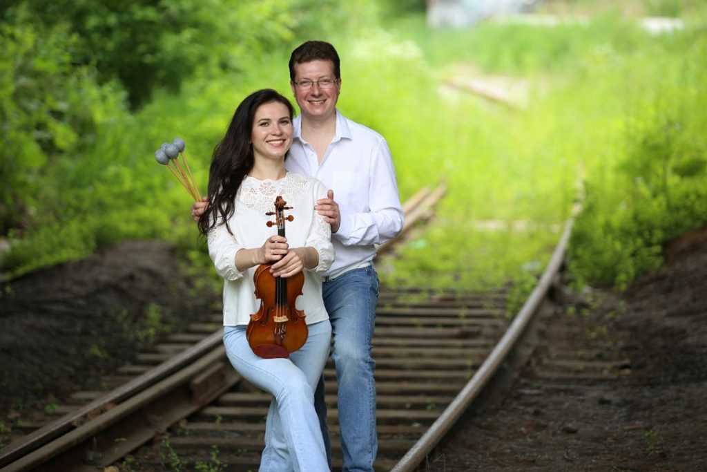 The marriage of the violin with a percussion instrument such as the vibraphone or marimba is an unusual one, but Anastasia Petrunina and Denis Petrunin do what they can to make the union work.