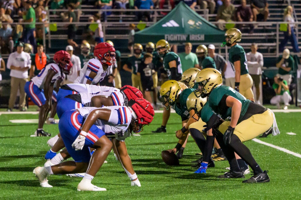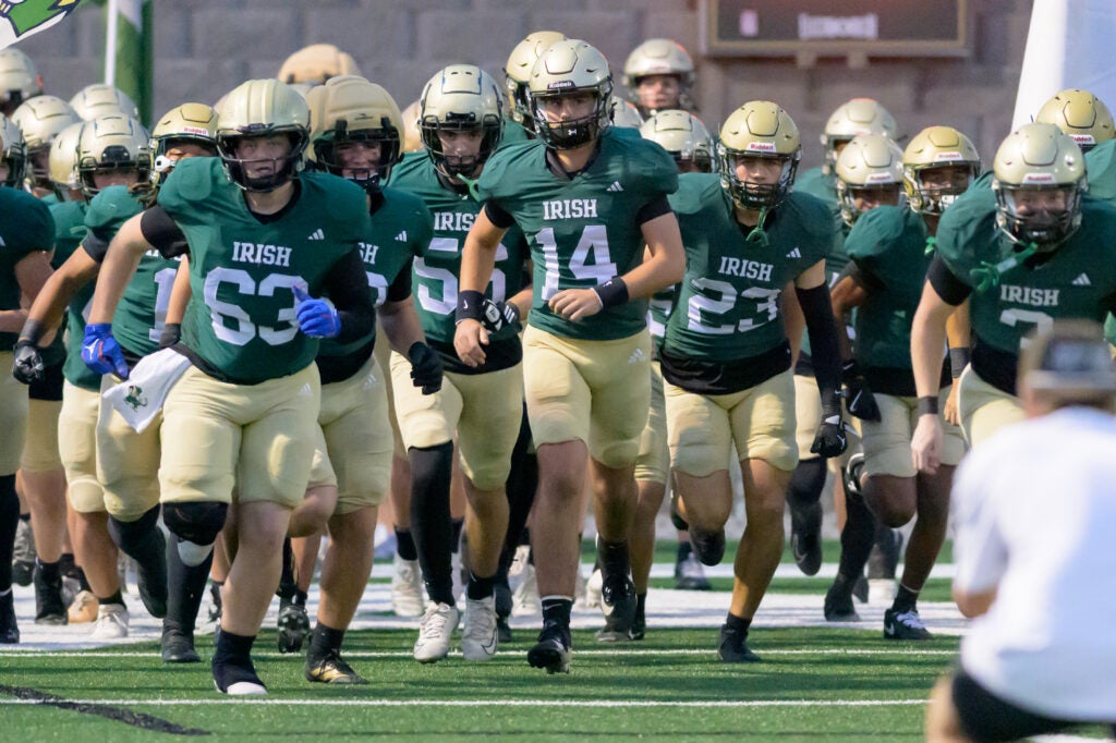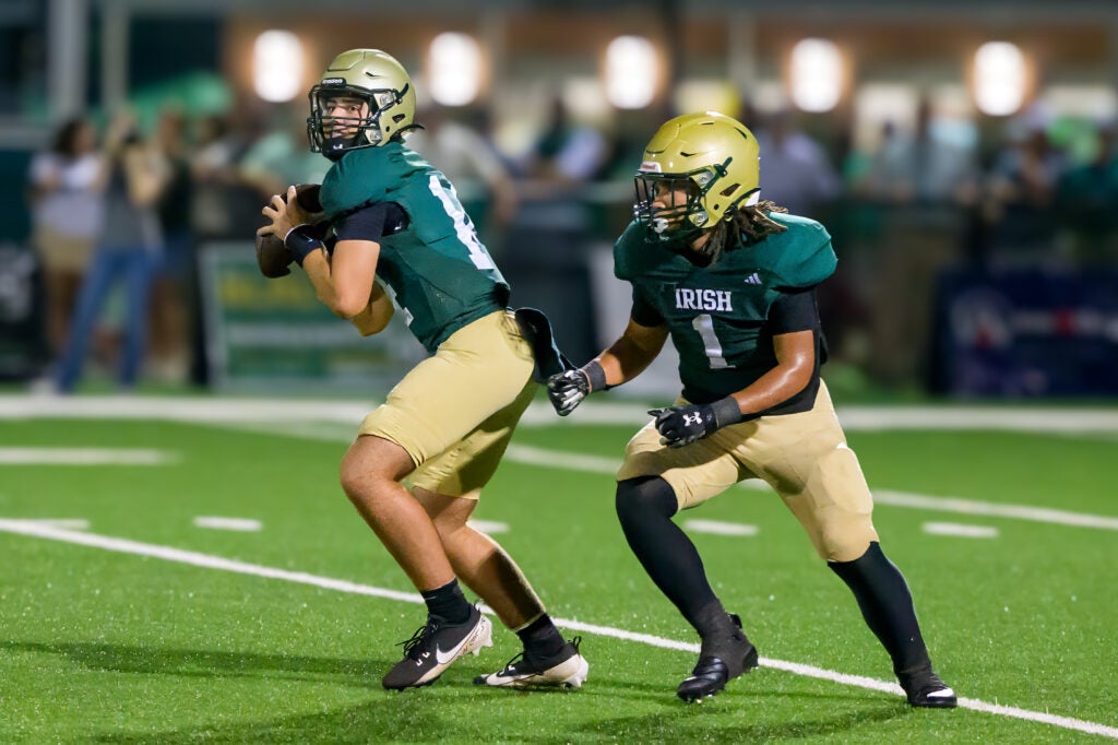 The Irish had other ideas. Stevenson answered with a quick scoring strike, trimming the deficit to 20–7 heading into the fourth quarter. Stevenson later connected with his favorite target, senior wide receiver Jack Rhodes, for another touchdown. Rhodes, a Virginia commit, notched his 10th score of the season to pull Aquinas within 20–14.