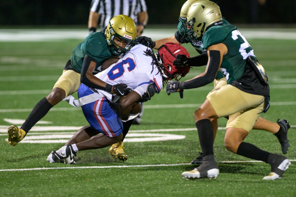 From the opening kick, the Patriots showed they were ready. Westside’s first possession drove inside the Aquinas 10-yard line, but the Irish defense stiffened and forced a missed field goal. The Patriots regrouped, breaking through when sophomore running back Elliot Jackson powered in from short range for a 7–0 lead. Both defenses tightened from there, and the halftime score remained 7–0.