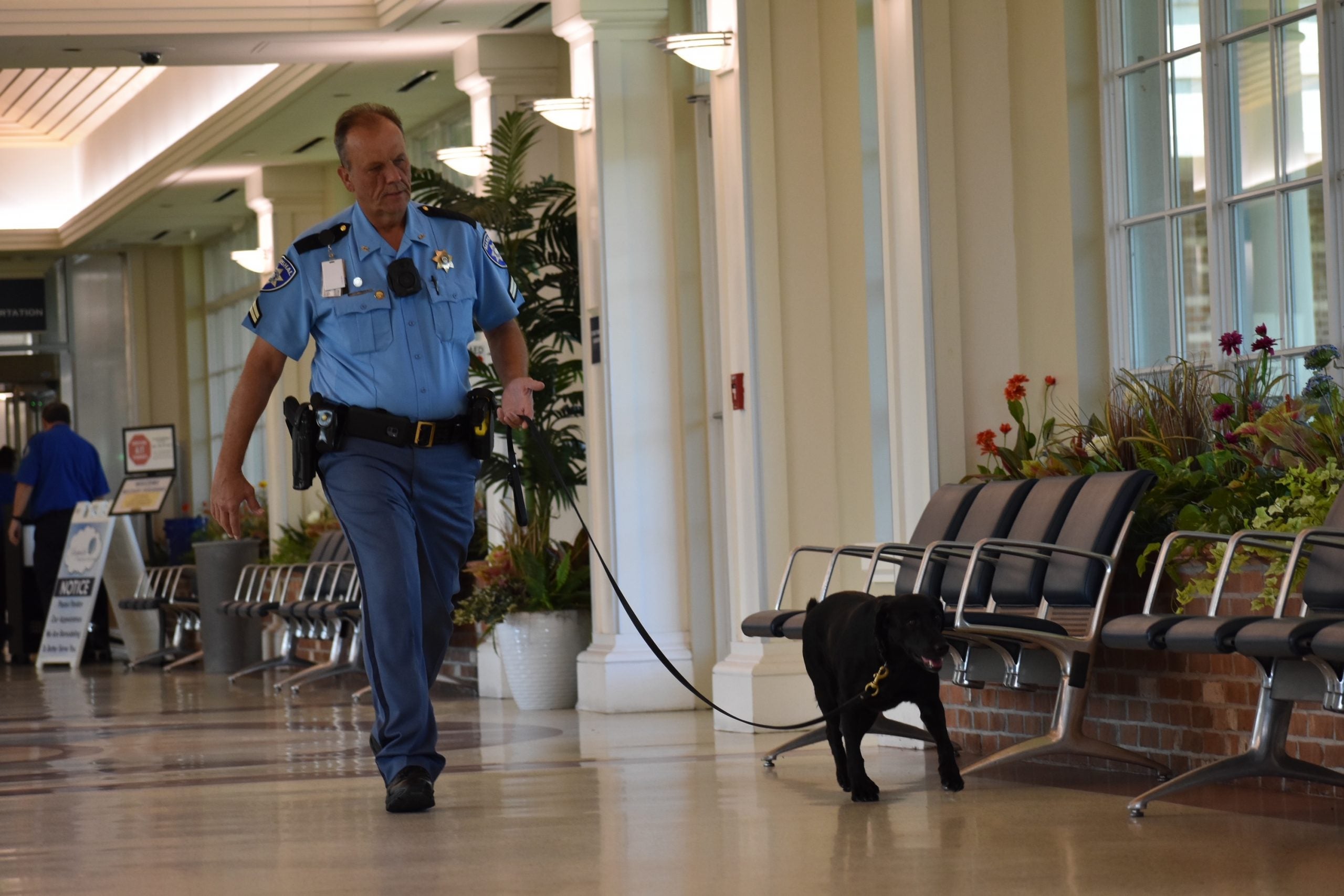 After the Marshal’s Office purchased her when she was one and half, Boettcher and Abby partnered and underwent a four-week course. Since then, both get recertified once every year by the International Police Work Dog Association. To be constantly read for recertification and any threats to the airport, Boettcher shared that he and Abby train a little bit every day.