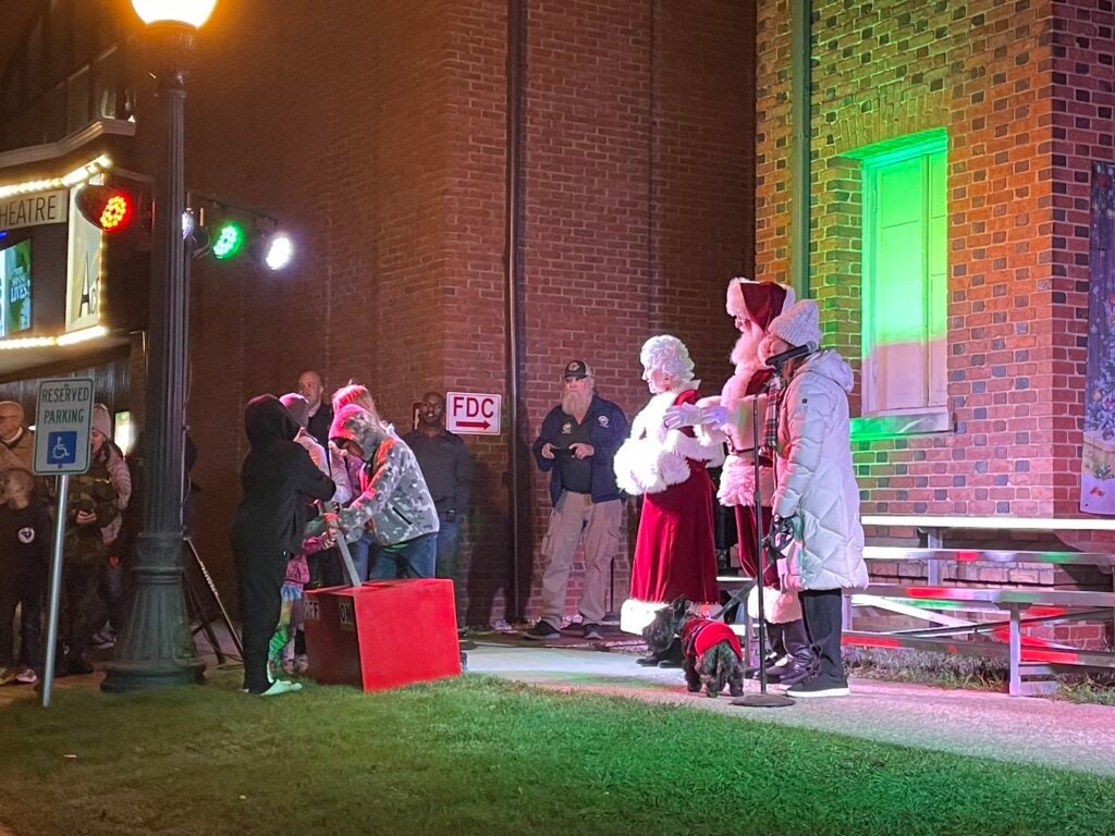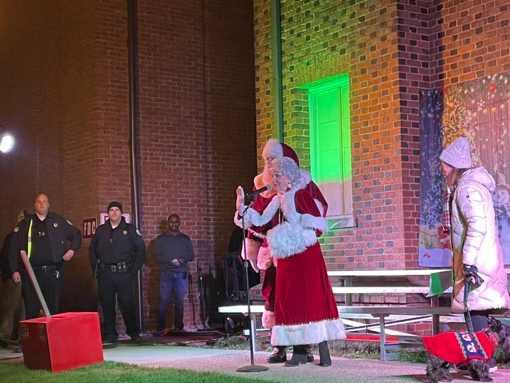 The USC Aiken choral singers gave renditions of “First Noel” before Mayor Teddy Milner, joined by Aiken City Council members, took the stage to offer holiday greetings and introduce the man of the hour, Kris Kringle himself, before the tree at the center of Newberry Street was illuminated.